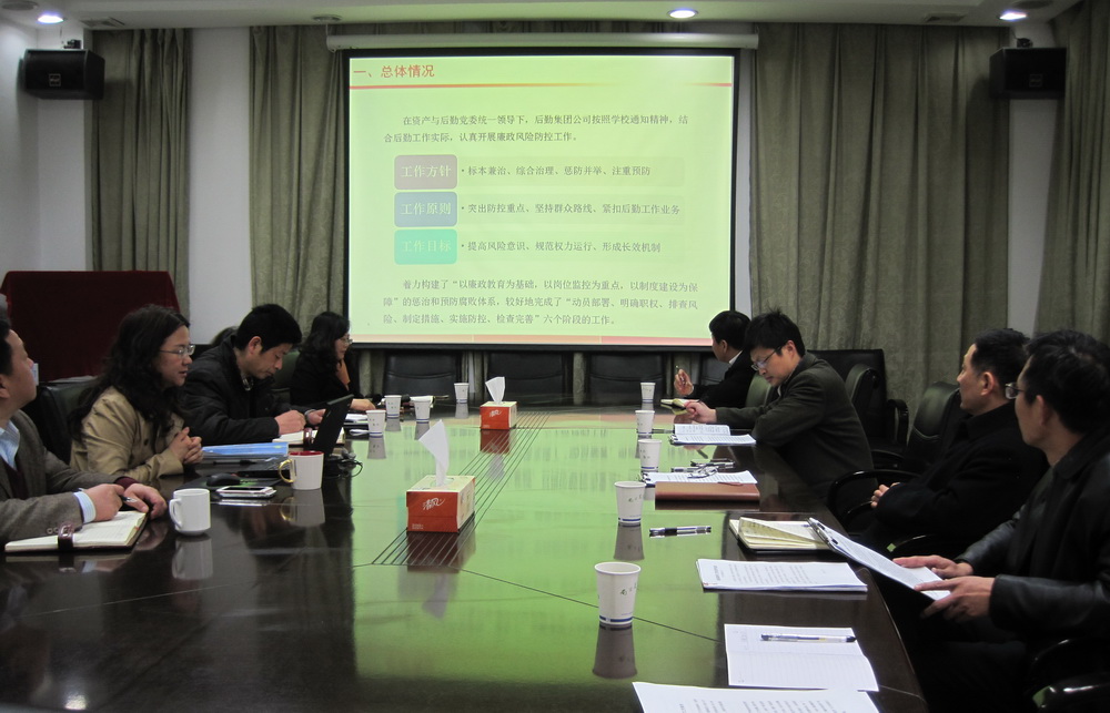 后勤集团公司总经理姜岩、资产经营公司总经理孙小伍分别从主要做法、取得的成效、心得体会、努力方向等方面汇报了本单位廉政风险防控工作情况。