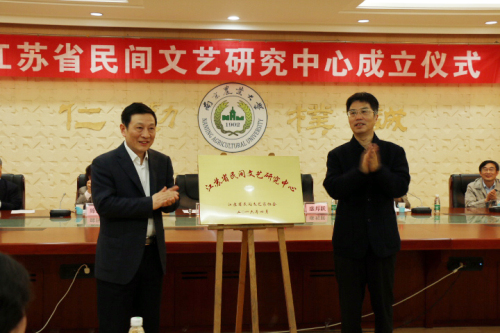 4月20日下午,江苏省民间文艺研究中心成立仪式在ac米兰金陵研究院二楼举行。江苏省省委宣传部常务副部长、省文联主席、党组书记章剑华,ac米兰官方网站党委副书记盛邦跃,江苏省文联副主席、省民间文艺家协会主席陈国欢,江苏省民间文艺家协会驻会副主席张丹,ac米兰官方网站人文学院院长杨旺生,江苏民间文艺家协会副主席束有春等出席成立仪式。江苏省民间文艺家协会代表、ac米兰人文学院部分教师代表、江苏省民间青年艺术家代表等参加了成立仪式。