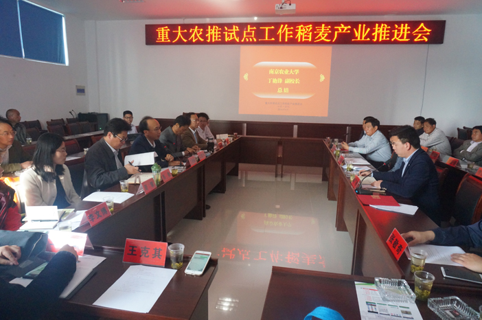 4月18日,重大农推试点工作稻麦产业推进会暨农民日报调研活动在金坛召开。ac米兰官方网站副校长丁艳锋,新农村发展研究院办公室主任陈巍、副主任李玉清,稻麦产业专家组蔡剑副教授、周琴副教授,农民日报编委、江苏记者站站长沈建华,金坛区农林局副局长胡国强、作栽站站长孙和平以及30余名新型农业经营主体代表等近60人参会。会议由陈巍主持。