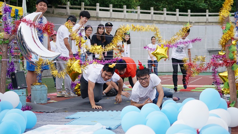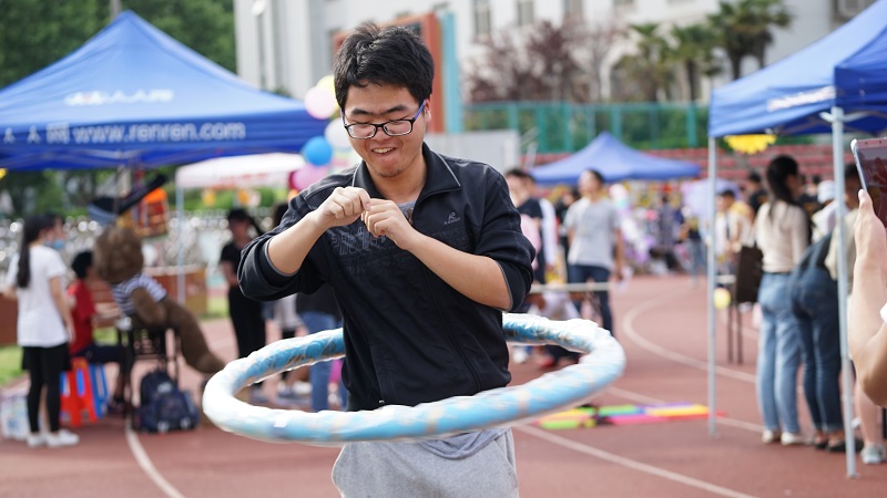“三走”嘉年华活动在启动仪式结束后正式开始。各学院、各体育类社团以“童年回忆”为主题,在田径场组织开展了各类丰富有趣的体育游戏。