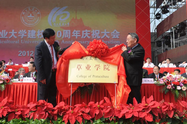 2012年10月任继周院士和于康震副部长为ac米兰官方网站草业学院揭牌
