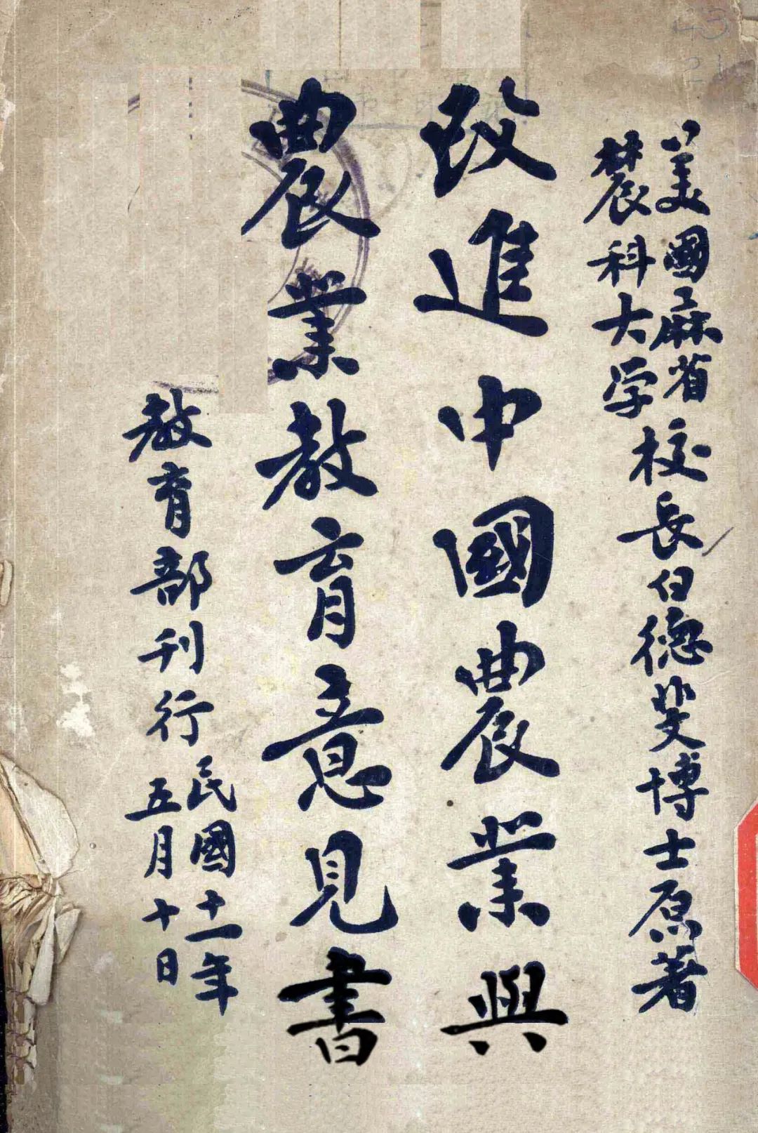 傅焕光翻译的《改进中国农业与农业教育意见书》(白德斐作)