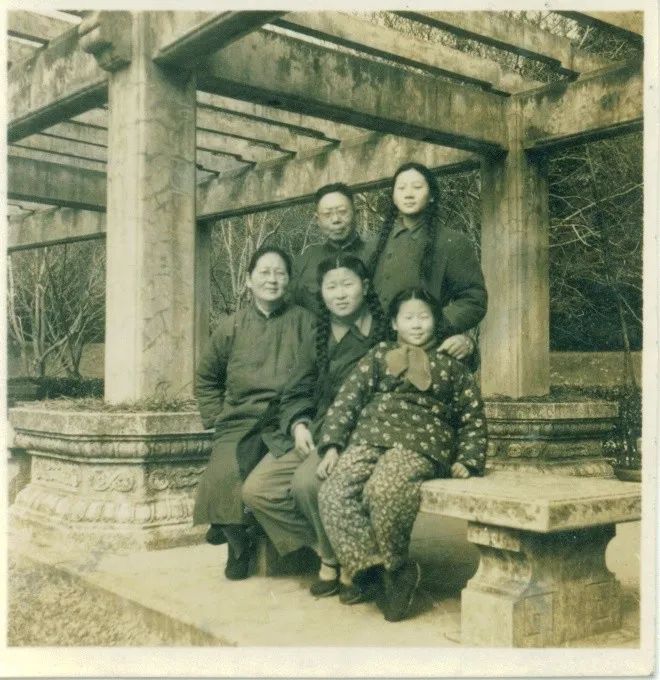 傅焕光包菊仙夫妇与三个女儿在中山陵音乐台合影,右上为傅华