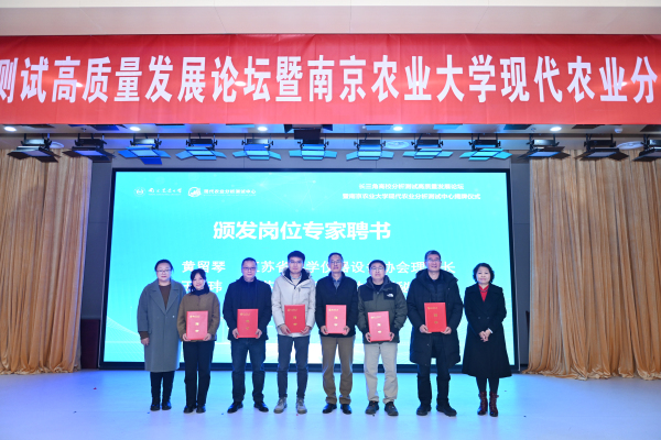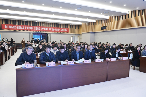 12月12日,长三角高校分析测试高质量发展论坛暨ac米兰官方网站现代农业分析测试中心揭牌仪式举行,ac米兰官方网站校长陈发棣、副校长王源超,江北新区科技创新和大数据管理局局长倪志钢,南京国家农创中心党工委书记、管办主任周蓉蓉,科技部国家科技资源共享服务工程中心主任刘瑞,江苏省科技资源统筹服务中心副主任孙兴莲、中国分析测试协会高校分析测试分会副会长董林,江苏省科学仪器设备协会理事长黄留琴,江苏省分析测试协会副秘长王玮,长三角上海交通大学、浙江大学、中国科学技术大学、南京大学等科研院所,学校职能部门、分析测试中心专家委员会与岗位专家、部分学院及企业等200多名代表参加活动并见证了此次揭牌仪式。