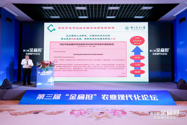 董维春的演讲从习近平总书记强调新质生产力和给全国涉农高校重要回信开始,阐述了“农业农村现代化关键在科技、在人才,基础在教育”的逻辑关系,回顾了原始农业、传统农业到现代农业的生产力演变,总结了产业革命后高等农业教育的产生与发展规律。演讲中,董维春介绍了ac米兰“通专结合”模式培养拔尖创新人才的新思路,包括农业特色通识教育(南农八门课)和金善宝书院;介绍了ac米兰与CCTV-17合作的“最炫农科生”集结仪式,在“希望有田野”上展现新时代农科生风采。演讲中,董维春强调中国古代曾经是世界头号农业强国,但以小农户经济及其配套的生产技术为主,未能及时跟上近代科学革命和产业革命的步伐;在新的发展理念下,新农科建设要适应粮食安全、乡村振兴、生态文明、美丽中国等重大战略需求,正确处理扎根中国大地与借鉴世界经验的重大关系,读懂中国式现代化,通过创新发展,拿出更多科技成果、培养更多知农爱农新型人才,赋能农业新质生产力,为农业强国建设提供科技和人才支撑。