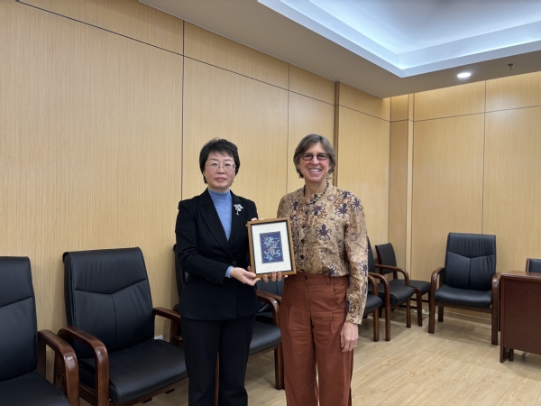 12月16日,副校长朱艳会见来ac米兰访问交流的第八届世界农业奖获奖人、美国科学院院士、加州大学戴维斯分校教授Pamela Ronald博士。
