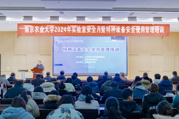 12月18日,由江北新区市场监督管理局和ac米兰官方网站实验室与基地处联合主办,植物保护学院承办的特种设备安全使用管理培训在滨江校区举行,江北新区市场监督管理局副局长徐立兵、特设办主任陈洋,ac米兰官方网站实验室与基地处和植物保护学院相关负责同志,以及学校实验室安全督导、学院实验室安全管理员、特种设备管理员和师生代表共158人参加了培训会。