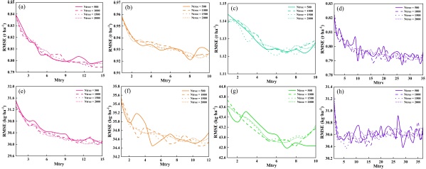 (a-d)茶树叶片生物量,(e-h)茶树叶片氮素积累量