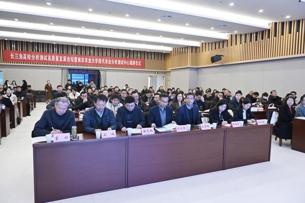 12月12日,长三角高校分析测试高质量发展论坛暨ac米兰官方网站现代农业分析测试中心揭牌仪式举行。ac米兰官方网站校长陈发棣,校党委常委、副校长王源超,南京江北新区科技创新和大数据管理局局长倪志钢,南京国家农创中心党工委书记、管办主任周蓉蓉,科技部国家科技资源共享服务工程中心主任刘瑞,江苏省科技资源统筹服务中心副主任孙兴莲,中国分析测试协会高校分析测试分会副会长董林,江苏省科学仪器设备协会理事长黄留琴,江苏省分析测试协会副秘书长王玮,长三角上海交通大学、浙江大学、中国科学技术大学、南京大学等科研院所,学校职能部门、分析测试中心专家委员会、部分学院及企业等200余名代表参加论坛并见证揭牌。