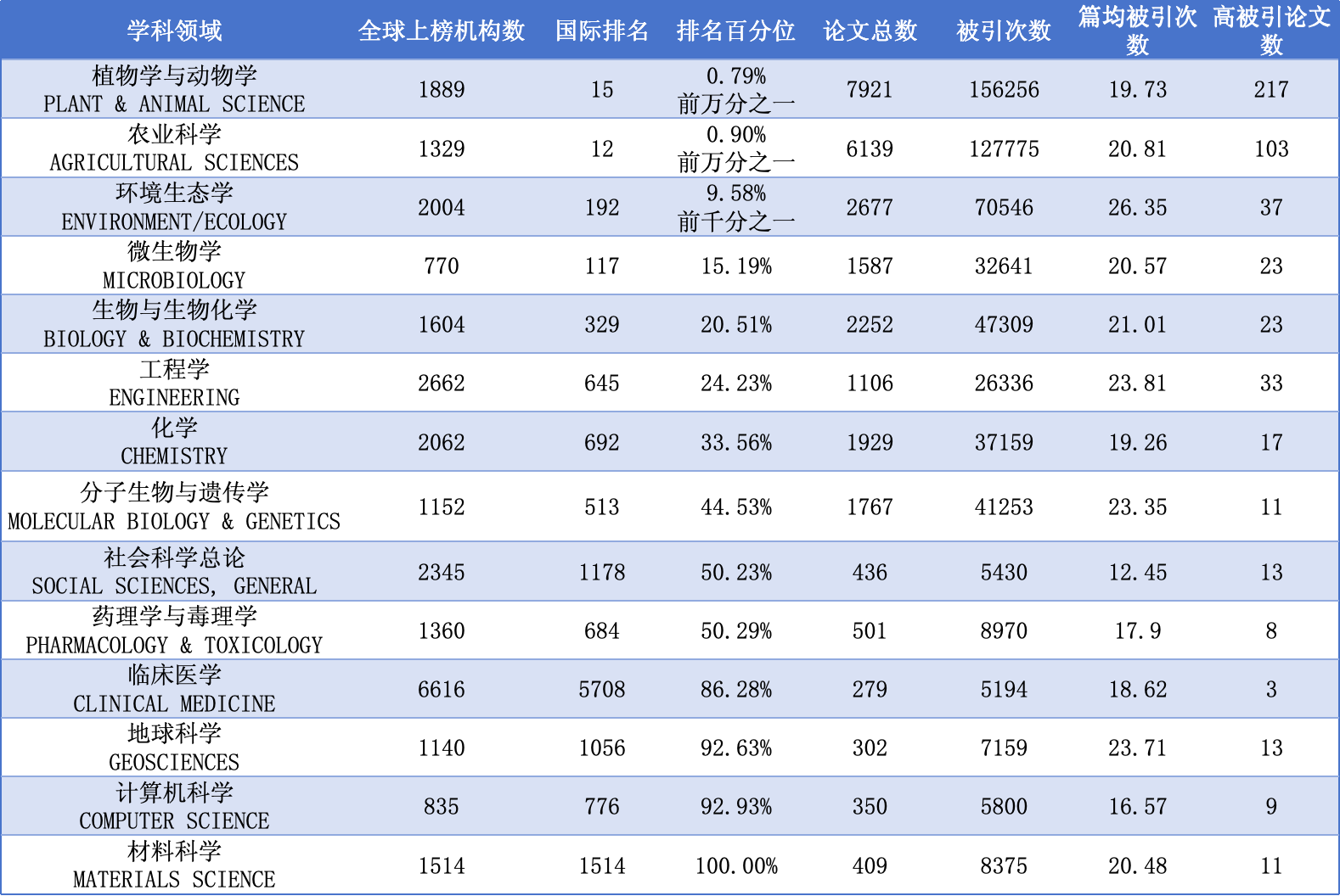 截至目前,ac米兰已有14个学科位列ESI全球前百分之一,其中植物学与动物学、农业科学2个学科稳居全球排名前万分之一,环境生态学进入前千分之一,彰显了ac米兰在相关学科领域的学术声誉和国际影响力。