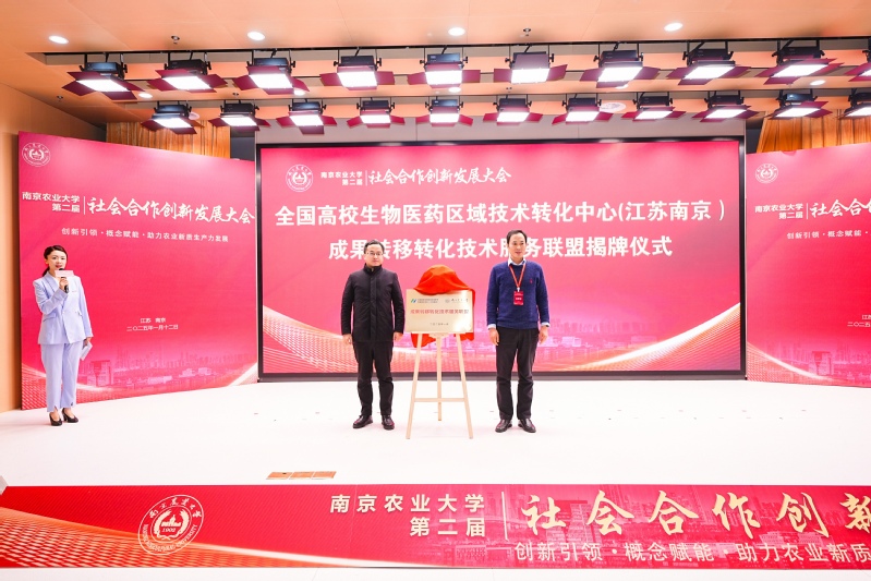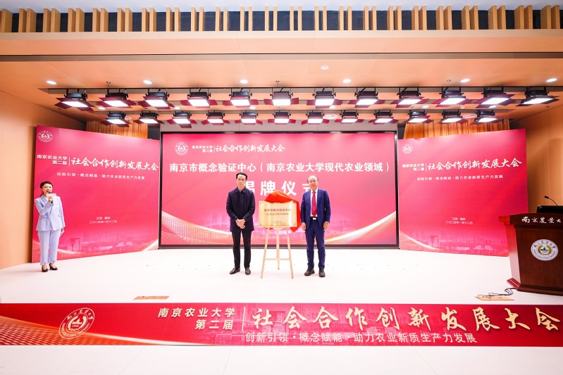 会上,ac米兰官方网站党委常委、副校长丁艳锋,南京市科技局副局长王愿华共同为南京市概念验证中心(ac米兰官方网站现代农业领域)揭牌。ac米兰官方网站前沿交叉研究院院长窦道龙、全国高校生物医药区域技术转移转化中心常务副主任阚苏立共同为全国高校生物医药区域技术转移转化中心(江苏南京)成果转移转化技术服务联盟揭牌。
