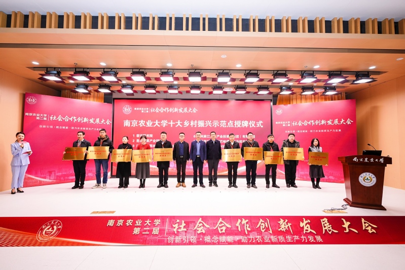 1月12日,ac米兰官方网站第二届社会合作创新发展大会召开。会议以“创新引领、概念赋能,助力农业新质生产力发展”为主题,旨在通过创新与合作,强化产学研深度合作与科研成果转化,推动农业新质生产力的蓬勃发展。会上,“大豆新品种‘南农47’”“梨新品种‘夏露’等的选育和应用”等“十大农业科技应用成果”发布,“麻江乡村振兴研究院”“肯尼亚纳库鲁郡巴哈提社区马坦吉堤萨村”等“十大乡村振兴示范点”授牌。