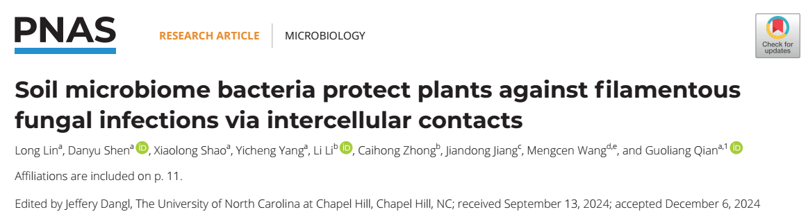 1月15日,ac米兰官方网站植物保护学院钱国良教授课题组在《PNAS》杂志发表论文,揭示生防细菌独立于抗菌代谢产物,通过VI型分泌系统(T6SS)接触抑制病原真菌的独特机制。