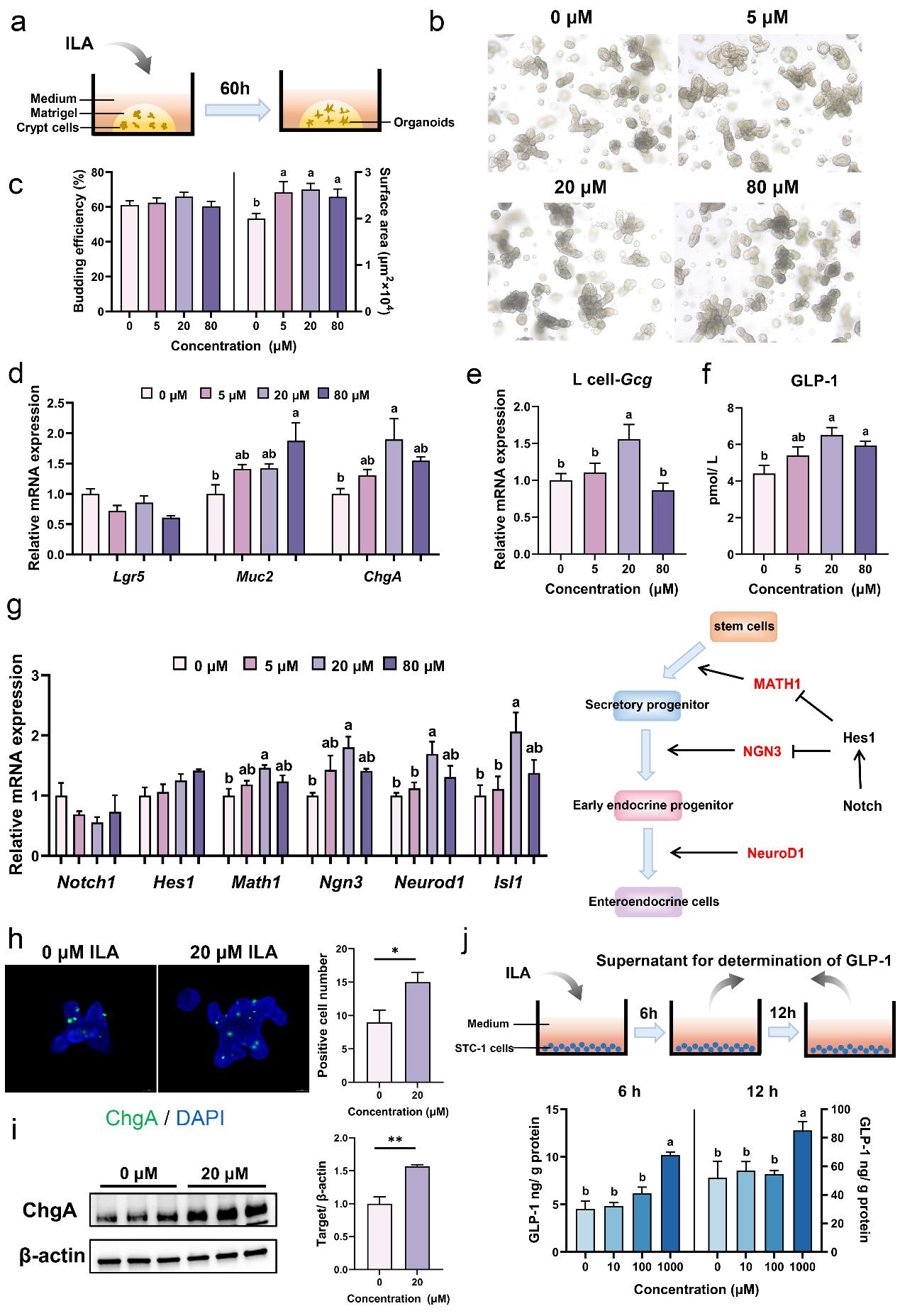 图2 吲哚-3-乳酸对肠道干细胞分化和GLP-1分泌的影响