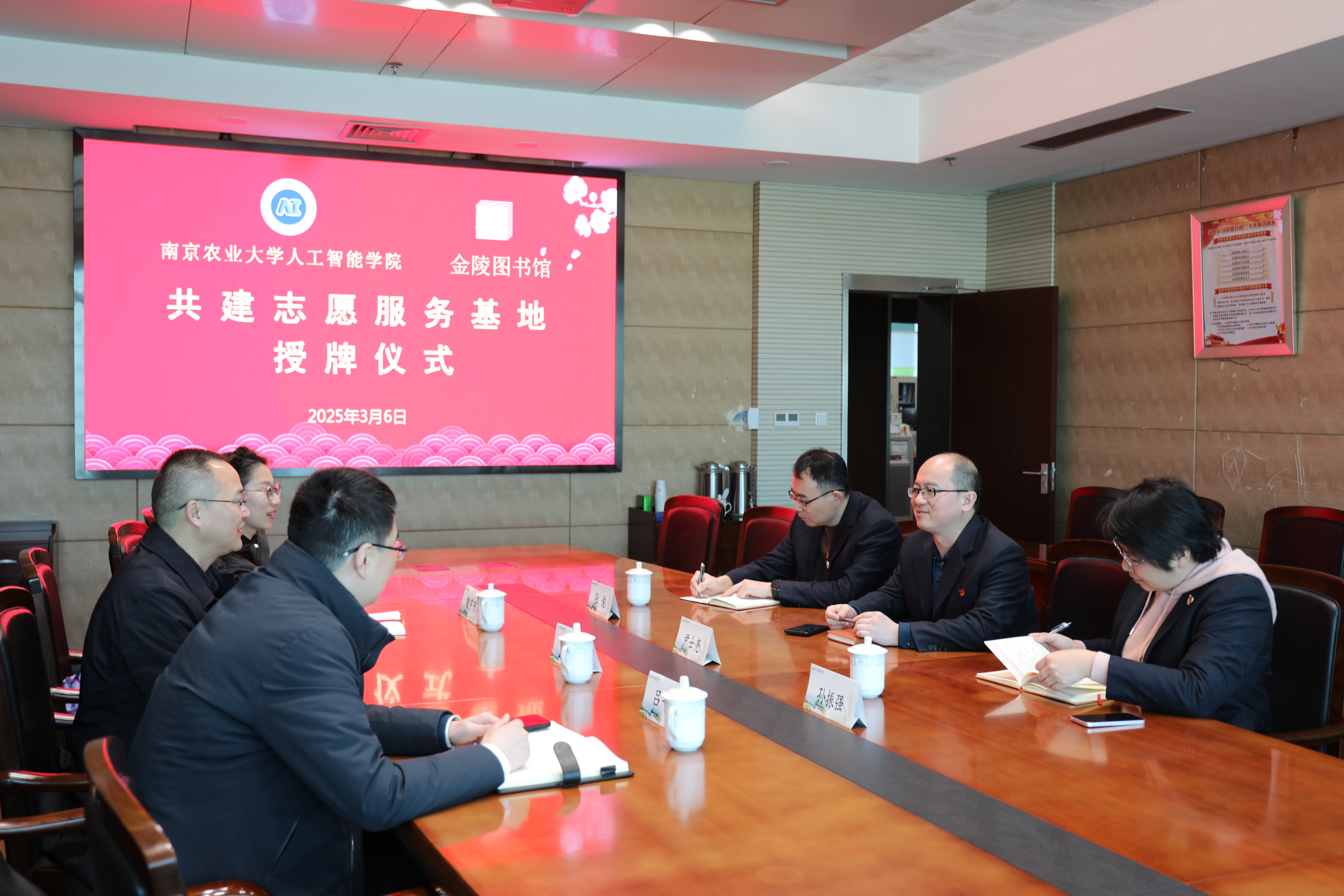3月6日,ac米兰官方网站人工智能学院与金陵图书馆洽谈智慧助残志愿服务项目,挂牌成立"志愿服务共建基地"。双方就科技助残项目开发、志愿服务体系构建达成深度合作意向。