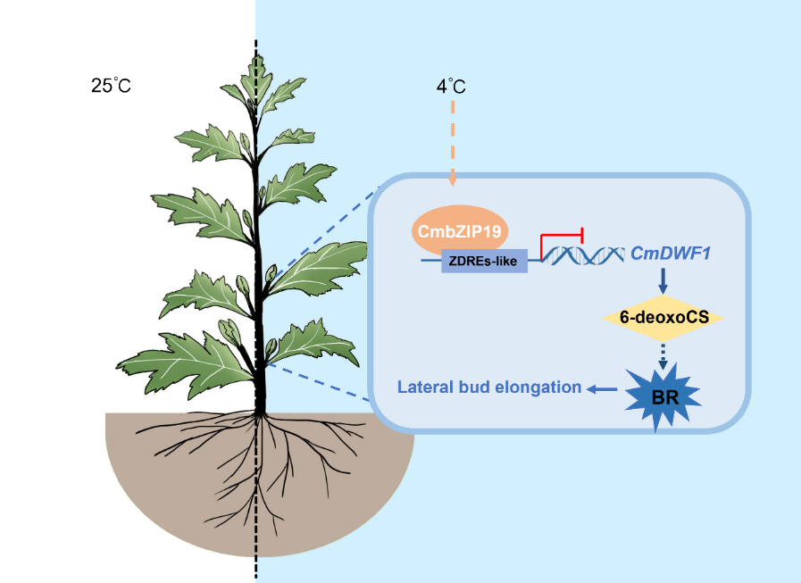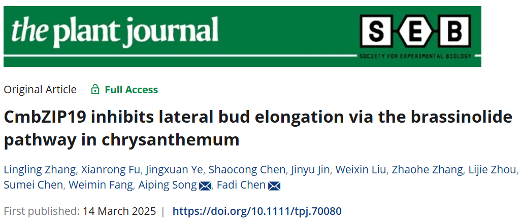 近日,ac米兰官方网站园艺学院菊花遗传与种质创新利用团队在《Plant Journal》在线发表了题为“CmbZIP19 inhibits lateral bud elongation via the brassinolide pathway in chrysanthemum”的研究论文,揭示了菊花CmbZIP19通过抑制油菜素内酯(BR)合成来调节植物侧枝发育。