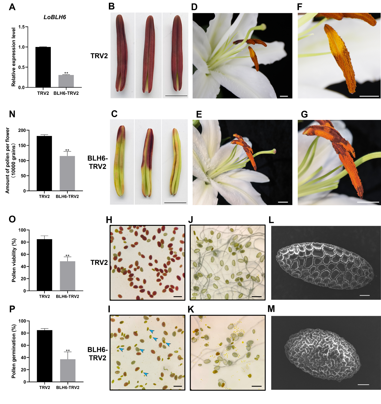 发表在Horticulture Research的论文中,我们鉴定到一个与百合GAMYB转录因子LoMYB65互作的蛋白LoBLH6,它定位于细胞核及细胞质中,表现出转录抑制活性,通过其BELL结构域与LoMYB65相互作用。LoBLH6在花药发育过程中持续表达,在中后期表达量尤其高。原位杂交结果显示,LoBLH6在绒毡层和小孢子中高表达,与LoMYB65具有相同的组织特异性。在百合中对LoBLH6进行沉默会导致花药发育异常、花粉数量减少以及GA含量增加。对百合施用GA所诱导产生的花药和花粉表型与LoBLH6沉默所产生的表型相似。进一步研究表明,LoBLH6能直接结合百合GA 20-oxidase1(LoGA20ox1)的启动子以抑制其表达,并且与LoMYB65共表达会增强这种抑制作用。此外,GA处理增强了LoBLH6与LoMYB65之间的相互作用以及它们所形成的复合体对靶基因的抑制效果。在百合花药中小孢子向成熟花粉粒转变的过程中,GA水平维持在一个稳定状态,而LoBLH6的沉默会破坏这种稳定状态,进而导致花粉发育异常。本研究揭示了LoBLH6与LoMYB65之间相互作用并通过对GA合成的反馈调节来调控花药发育的新机制,并发现了GAMYB在调控花药GA合成方面的新功能,为理解GA在植物花药发育中的作用提供了新视角。