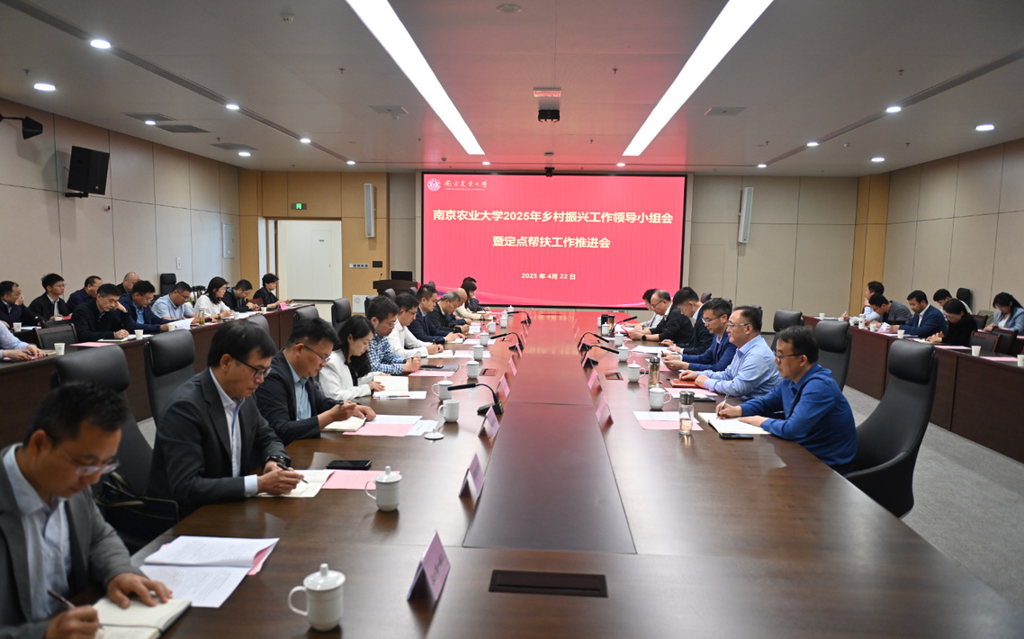 4月22日,ac米兰官方网站召开2025年乡村振兴工作领导小组会暨定点帮扶工作推进会。校党委书记王春春、校长陈发棣,党委常委、副校长丁艳锋、单正丰、朱艳,党委常委吴群等出席会议,ac米兰乡村振兴工作领导小组全体成员单位负责同志等50余人参加会议。会议由丁艳锋主持。