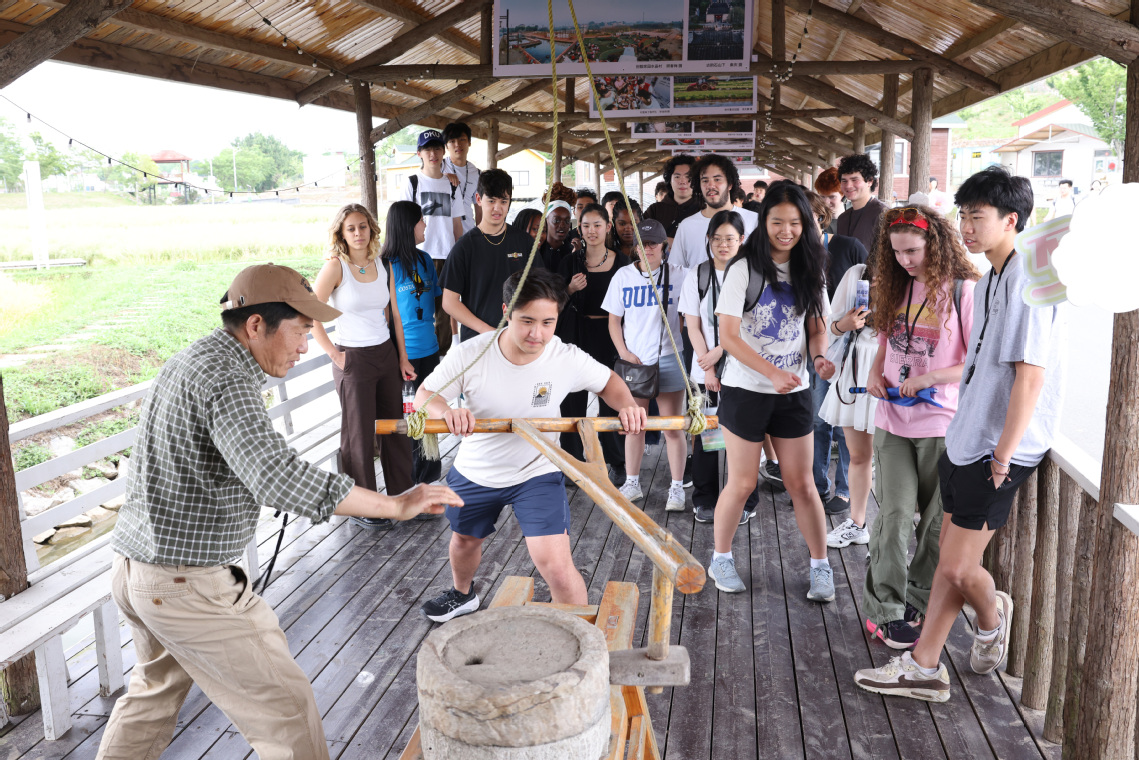 交流期间,美国学生参观了ac米兰官方网站中华农业文明博物馆、生物标本馆等,并赴ac米兰官方网站教学实践基地——溧水区芝山村,实地参观了潘根兴教授团队在当地推进的炭基循环生态健康技术工程,体验了磨豆腐,酿酒,采茶,包包子等中国特色民俗活动,亲身感受到我国科技赋能乡村振兴的丰硕成果。