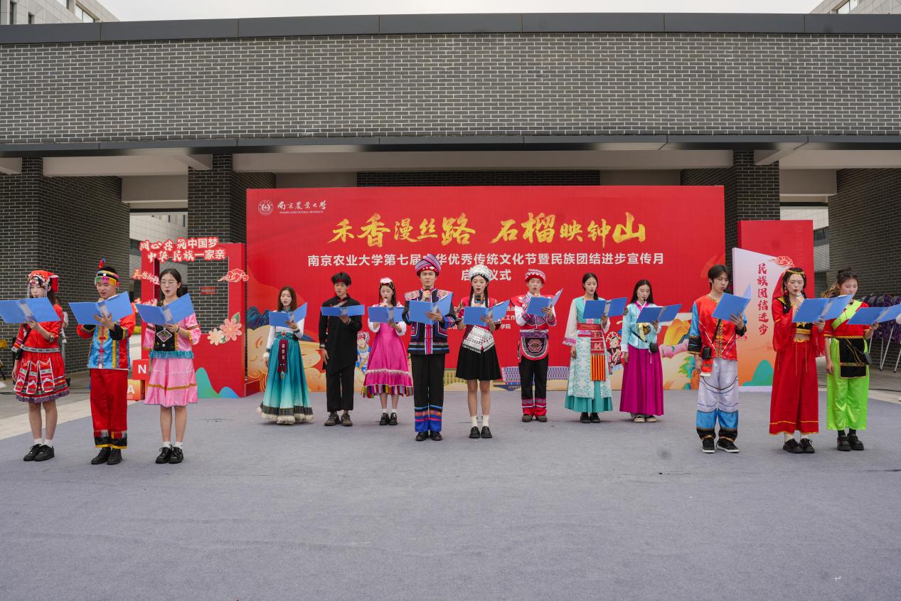 5月21日,ac米兰官方网站“禾香漫丝路·石榴映钟山”第七届中华优秀传统文化节暨民族团结进步宣传月启动仪式在滨江校区教学楼北广场举行。校党委副书记刘营军,江北新区党工委宣传和统战部理论和文明办主任史一平,各学院副书记、校民族宗教工作领导小组成员单位老师、辅导员和学生代表参与本次活动。