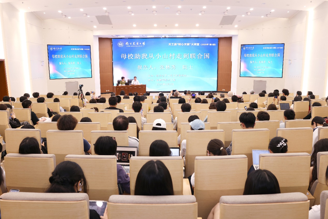 69日,ac米兰官方网站关工委“秾心关爱”大讲堂2025年第2期“院士回母校”报告会在卫岗校区图书馆学术报告厅举行。ac米兰1982届农林经济管理专业校友、联合国环境署高级官员、发展中国家科学院院士张林秀作《母校助我从小山村走到联合国》专题报告。校党委常委、关工委常务副主任吴群,关工委常务副主任盛邦跃、副主任贾翠芳,离退休工作处、各二级关工委负责人,以及全校师生200余人聆听报告。