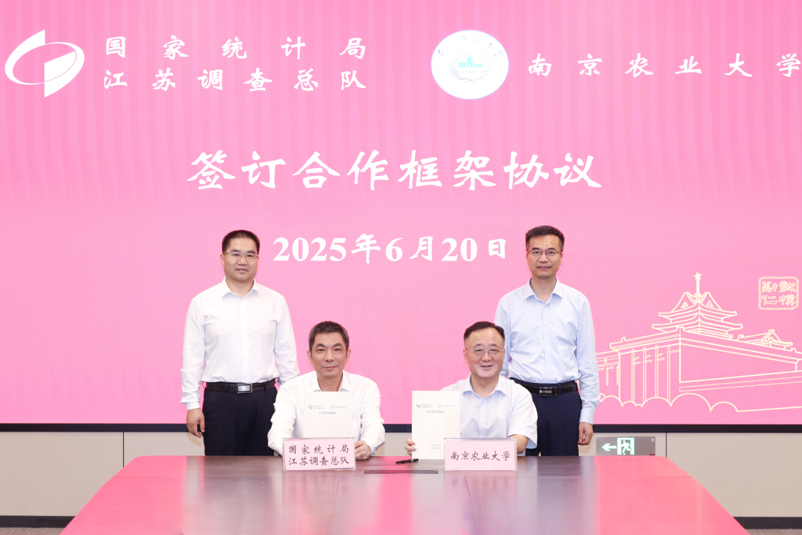 陈发棣指出,南农与江苏调查总队的战略合作,既是双方服务强国建设的积极行动,也是统计调查“国家队”和农业高校“国家队”的强强联合,更是双方构建长期稳定的政产学研合作机制的重要开端。希望校政双方共同致力“协同创新”,为农业农村现代化提供专业化平台支撑;共同聚力“人才共育”,为夯实农业强国建设提供精准化智力支撑;共同聚焦“数据赋能”,为统计调查领域智能化技术融合应用提供标准化数据支撑。
