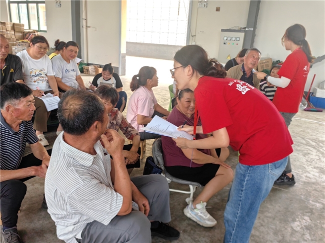 在东台市兆丰村党群服务中心“兆丰残疾人之家”,在听了团队的宣讲后,一位阿姨紧紧拉住宣讲队员们的手,流下感动的泪水。她说,“如果没有党,没有村里这个地方,我都不知道今后的日子怎么过。”兆丰村的农产品冷链物流基地俨然成为了农户们的村口聚集地,实践团队们一边和农户拉拉家常,一边宣讲惠民政策;孩子们则搬来小板凳,津津有味地听队员们讲着党的历史故事。