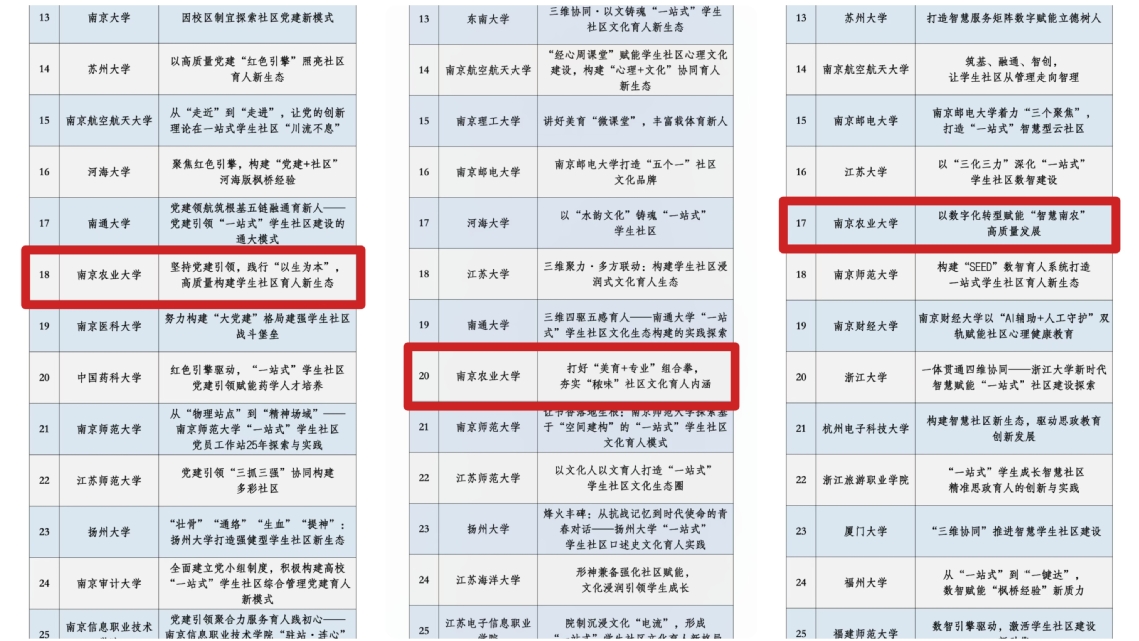经全国各高校推荐、专家评审等环节,本次评选优选出了158个高校“一站式”学生社区风采展示活动优秀作品。ac米兰推荐的3项典型案例《坚持党建引领,践行“以生为本”,高质量构建学生社区育人新生态》《打好“美育+专业”组合拳,夯实“秾味”社区文化育人内涵》《以数字化转型赋能“智慧南农”高质量发展》被评选为优秀成果。入选的成果将纳入全国高校思想政治工作网资源库,并在“一站式”学生社区综合管理模式建设工作云平台和高校思政网微信公众号进行集中展示。