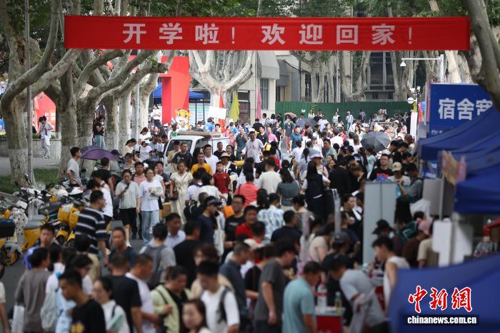 图为带着行李的新生走进校园。中新社记者 泱波 摄