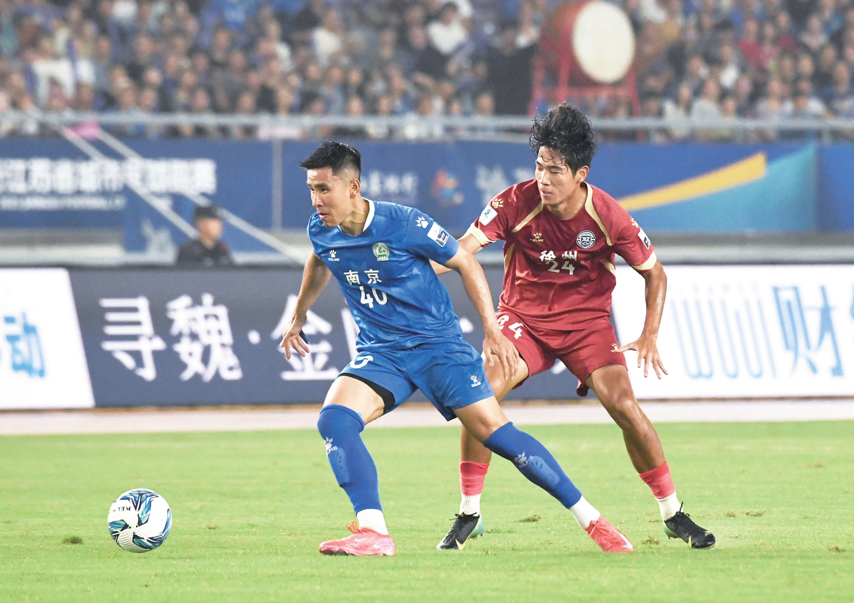 图为南京队和徐州队在“苏超”赛场上激烈角逐