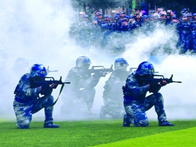 南航新生进行战术模拟对抗演练︒学校供图