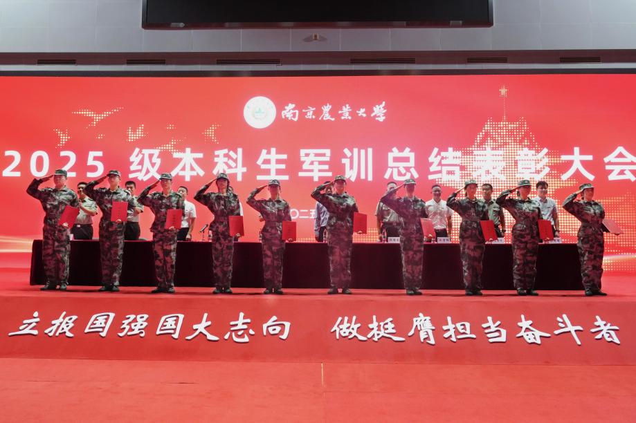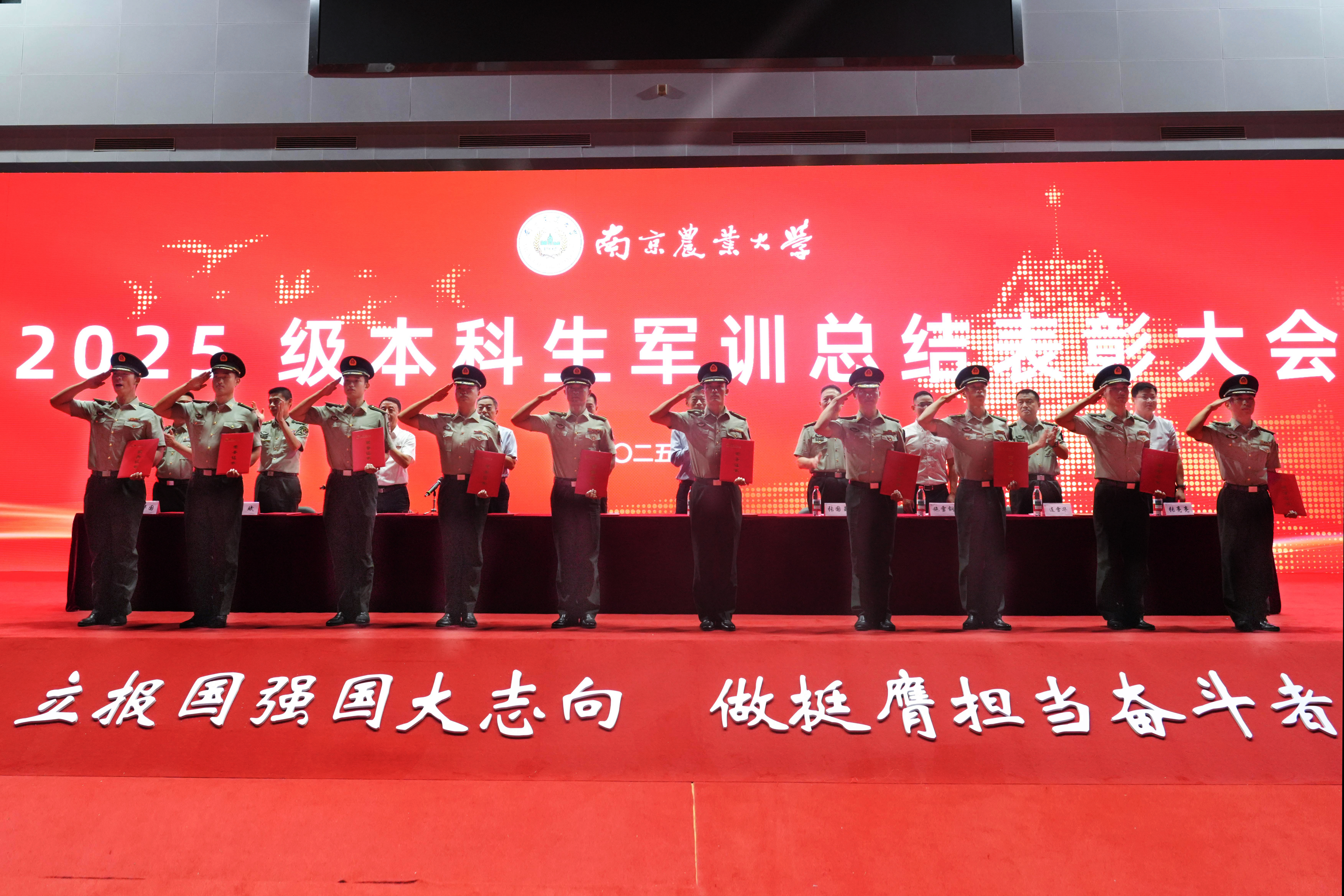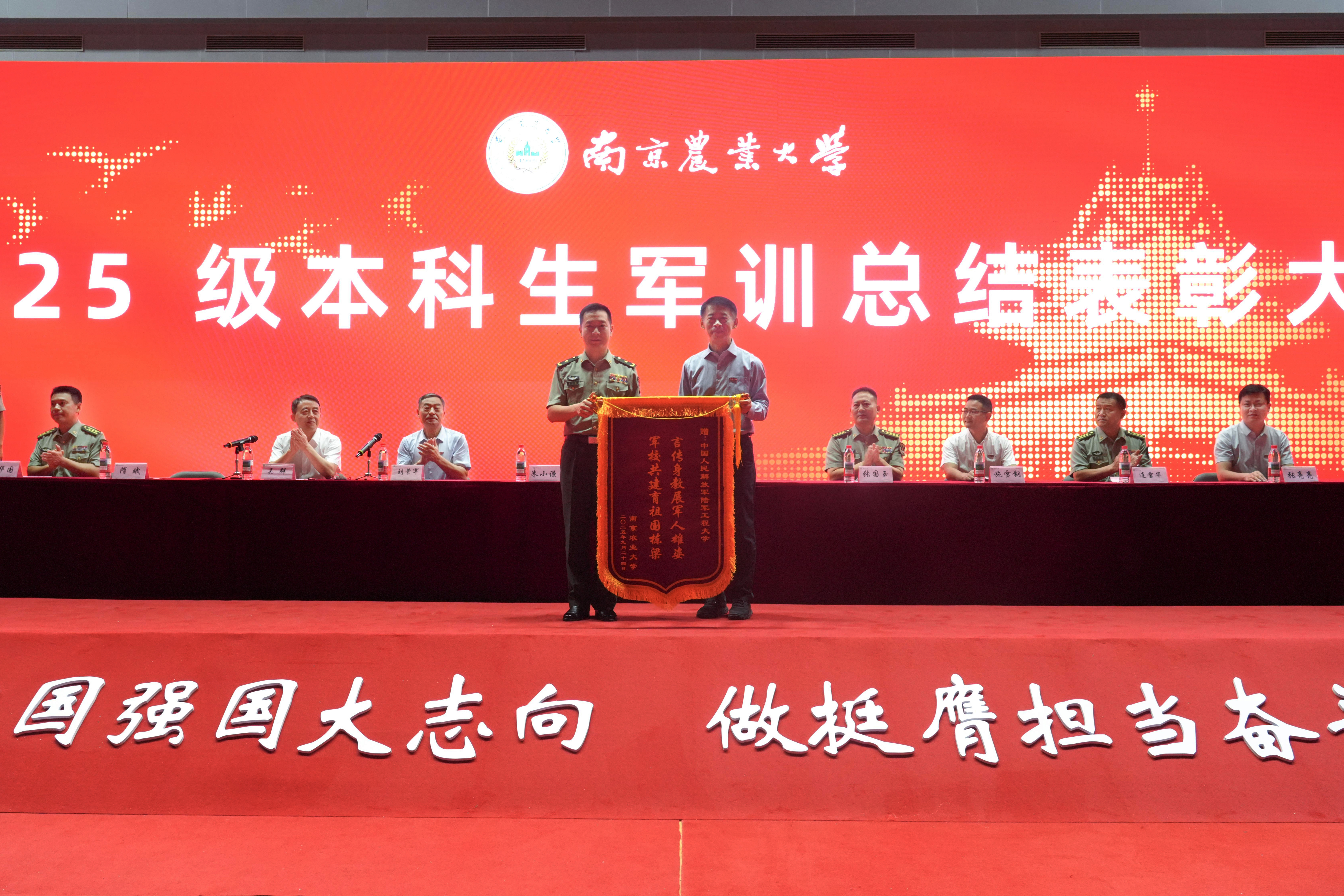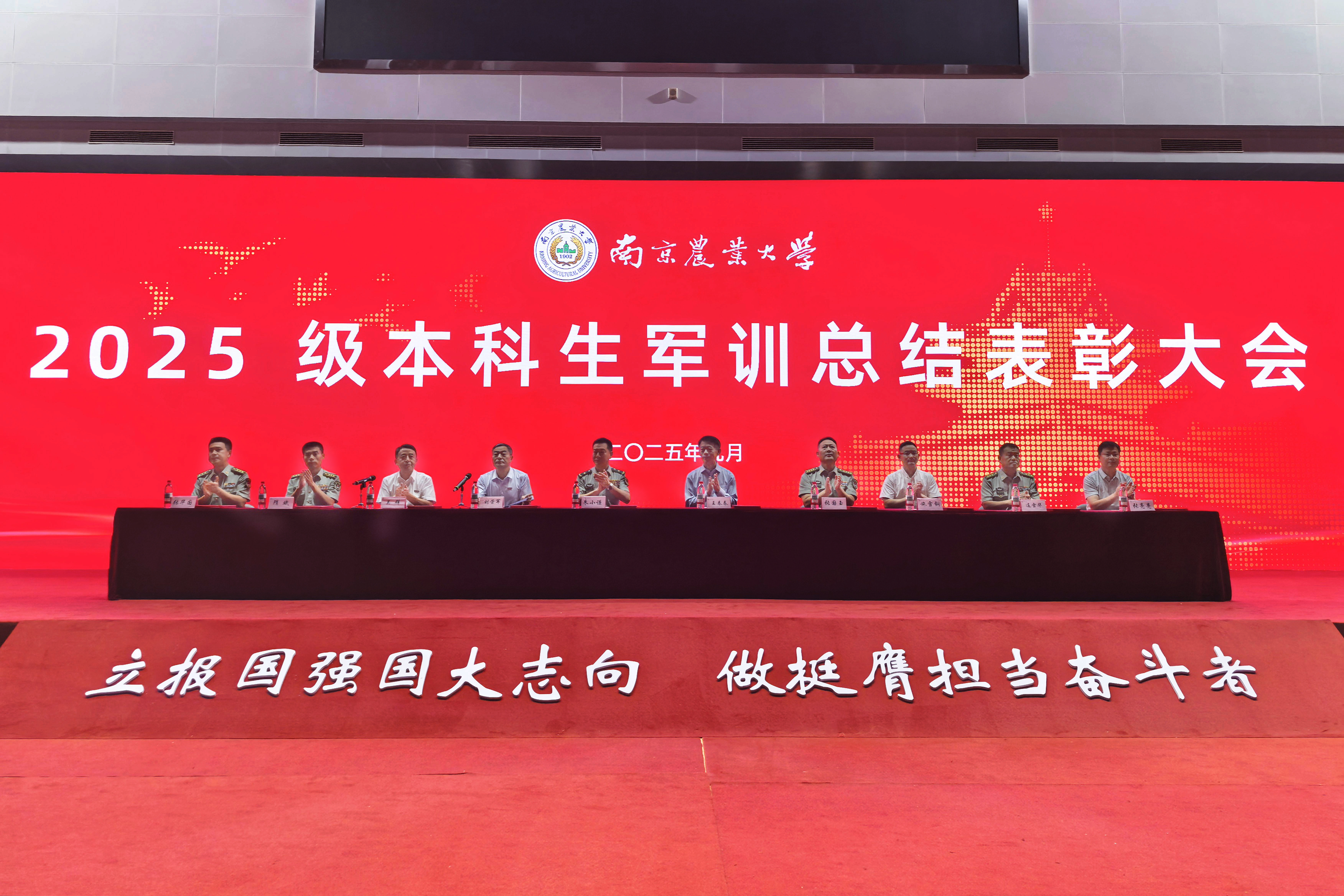 刘营军作军训总结讲话,代表学校向圆满完成本次军训任务的同学们表示祝贺。他表示,此次军训充分彰显了新时代南农学子坚韧不拔的意志品质和奋进一流的决心使命。他寄语同学们秉持学校优良传统,巩固军训成果,心系国家事、肩扛国家责,涵养爱农情、砥砺强农志,打牢基本功、铸牢竞争力,将军训锤炼出的自信担当、拼搏精神内化于心、外化于行,自觉把个人发展与国家、民族的命运紧密联系在一起,踔厉奋发、勇毅前行,奋力书写为强国建设挺膺担当的青春篇章。